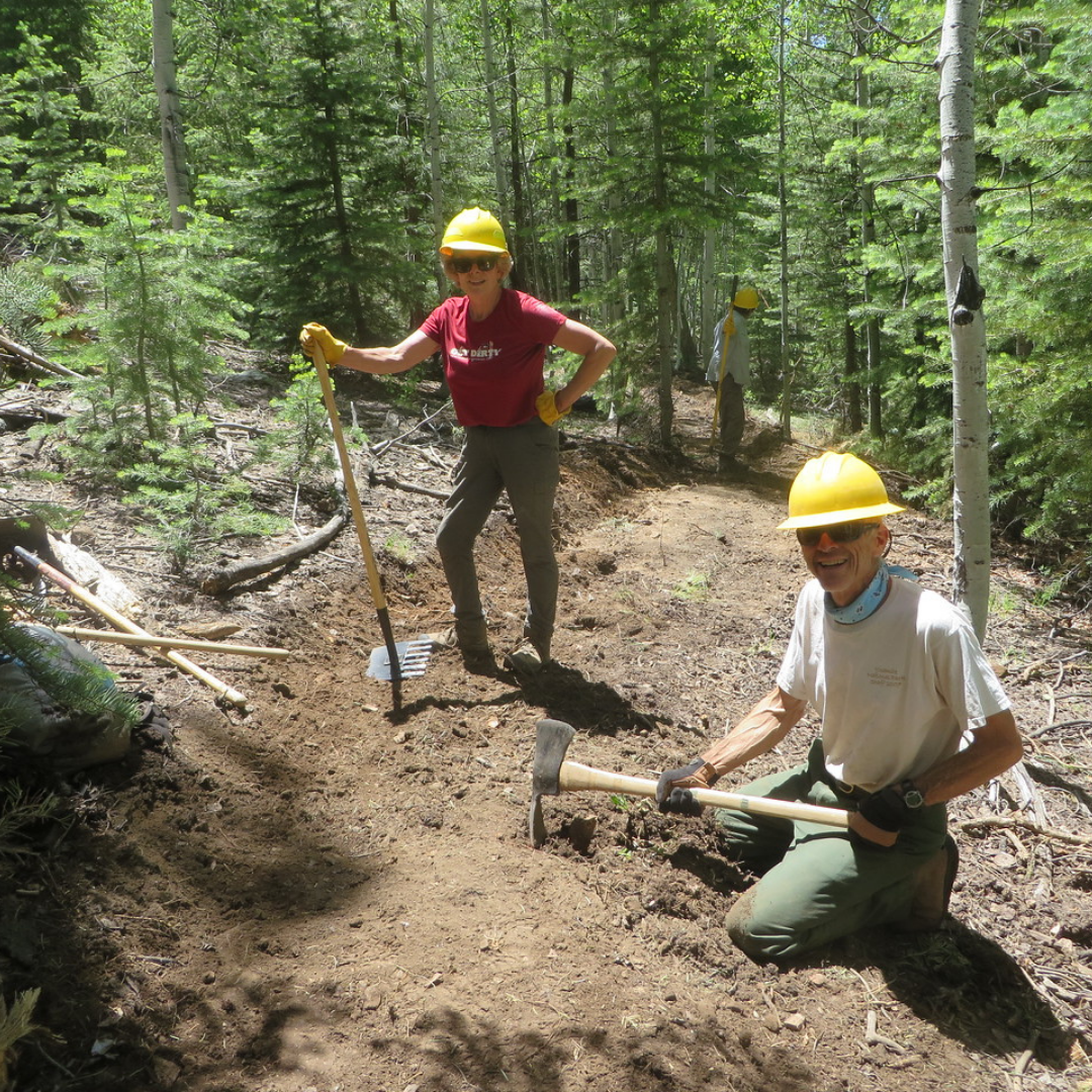 Backpacks on established trails. Also, car-camping or lodge/dormitory trips with long day hikes and demanding physical work. These trips are for energetic, fit people and may involve high altitude and remote areas. The work projects may include heavy lifting, lots of bending, shoveling, picking, chopping, and/or sawing.
